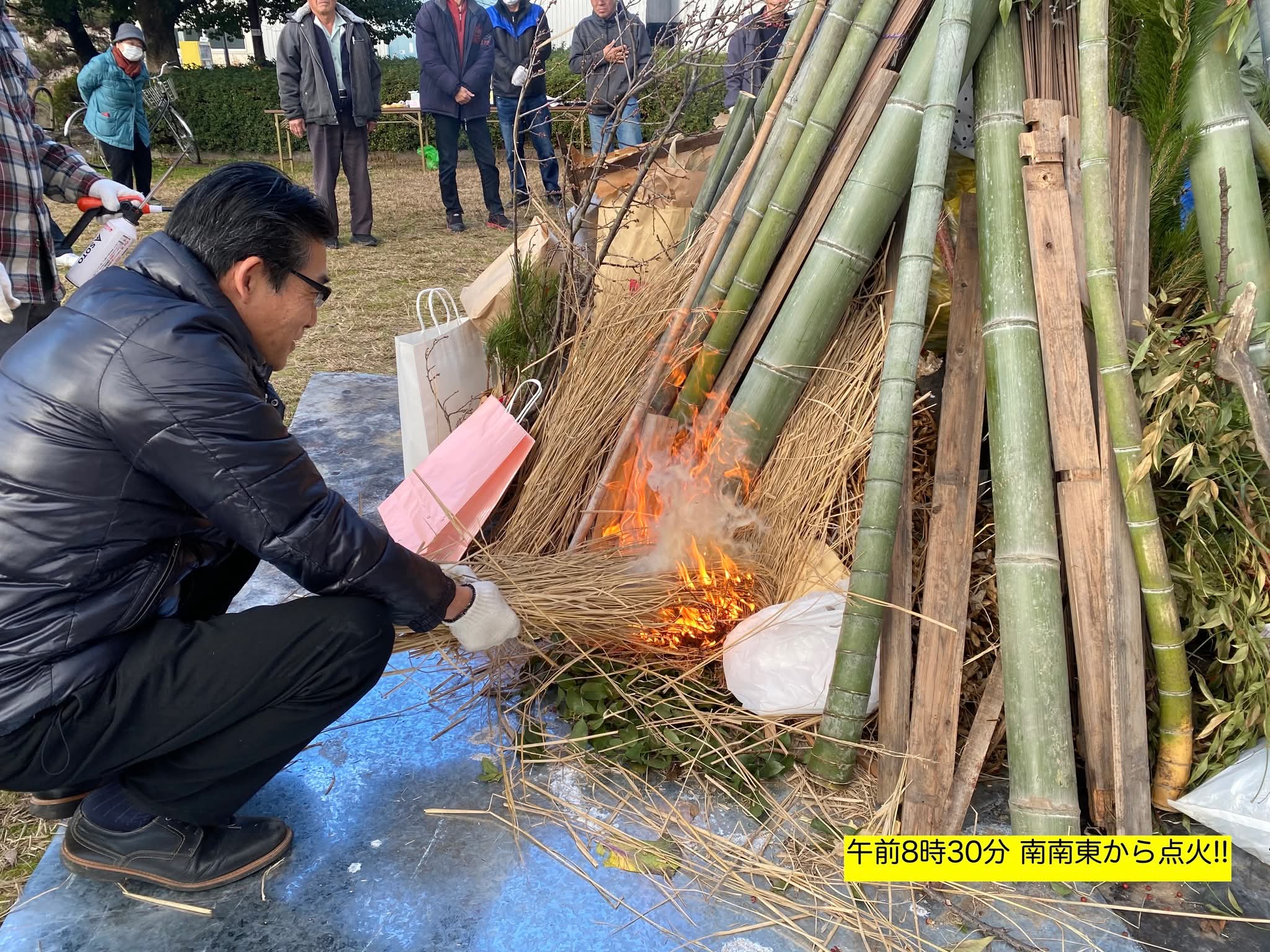 お祭り 左義長(どんど焼き)火祭りが開催されました。 2026.1.13 令和8年1月11日 天神公園にて左義長(どんど焼き)の火祭りが催されました。 一年間の家内安全などの御札やお守り、お正月のしめ縄飾りなどを持参してもらい六所神社の門松と一緒に燃やし て一年の無病息災や家内安全を祈願いたしました。沢山の町内会の皆さんにご参加を頂きありがとうございました。 ※岩田禮仁様に写真を提供いただきました。いつもありがとうございます。 Post 投稿者: staff お祭り, 町内会 新嘗祭(にいなめさい) 関連記事 地蔵盆 ごみボックスの補修と清掃 六所神社 秋祭り 子ども獅子 ゴミ出しのルールを守りましょう 六所神社・公民館(町内大掃除) 地蔵盆のお知らせ