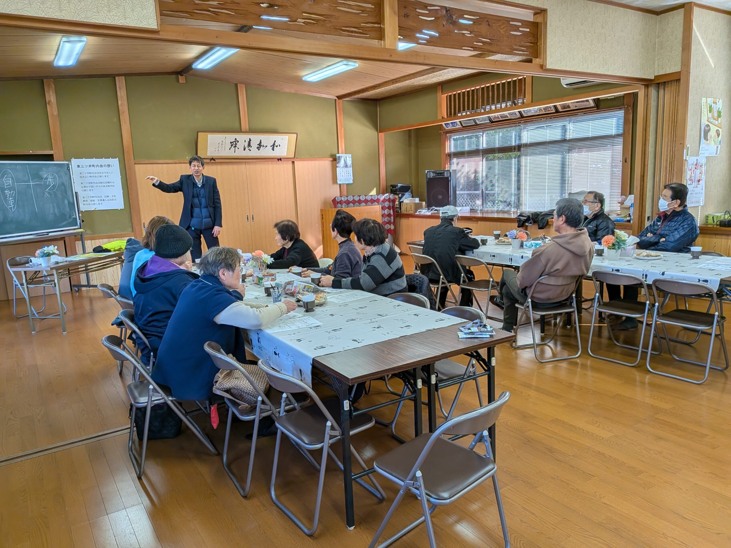 東三ツ井和寿会(老人クラブ) 第78回東三ツ井おしゃべり会を開催しました。 2026.2.18 当日の風景 当日の風景 第78回東三ツ井おしゃべり会が、令和8年2月10日(火)東三ツ井公民館で行われました。 当日は、愛知県警一宮警察署生活安全課から大森章史さんに来ていただいて、「特殊詐欺」 「4月から自転車にも青キップ」などの講座を受けました。 国際電話の通話拒否の手続きやスマホのアプリ設定など、皆さん我がこととして真剣に聞き入り 対応しました。 Post 投稿者: staff 東三ツ井和寿会(老人クラブ) 左義長(どんど焼き)火祭りが開催されました。 関連記事 社会見学ツアー 老人クラブシルバー教養講座と丹陽公民館成人学習部と共催 第66回東三ツ井おしゃべり会開催❕ 東三ツ井和寿会(老人クラブ)日帰り旅行に行ってきたよ! 丹陽町連区見守りネットワーク推進委員会(地域支え合い研修) 東三ツ井和寿会 12月のお便り 6月2回目「東三ツ井おしゃべり会」開催!