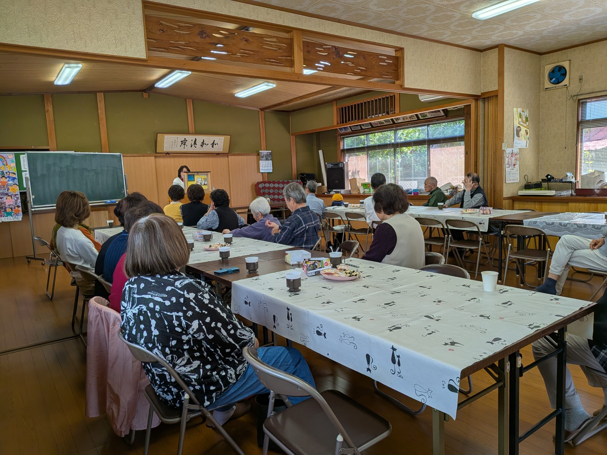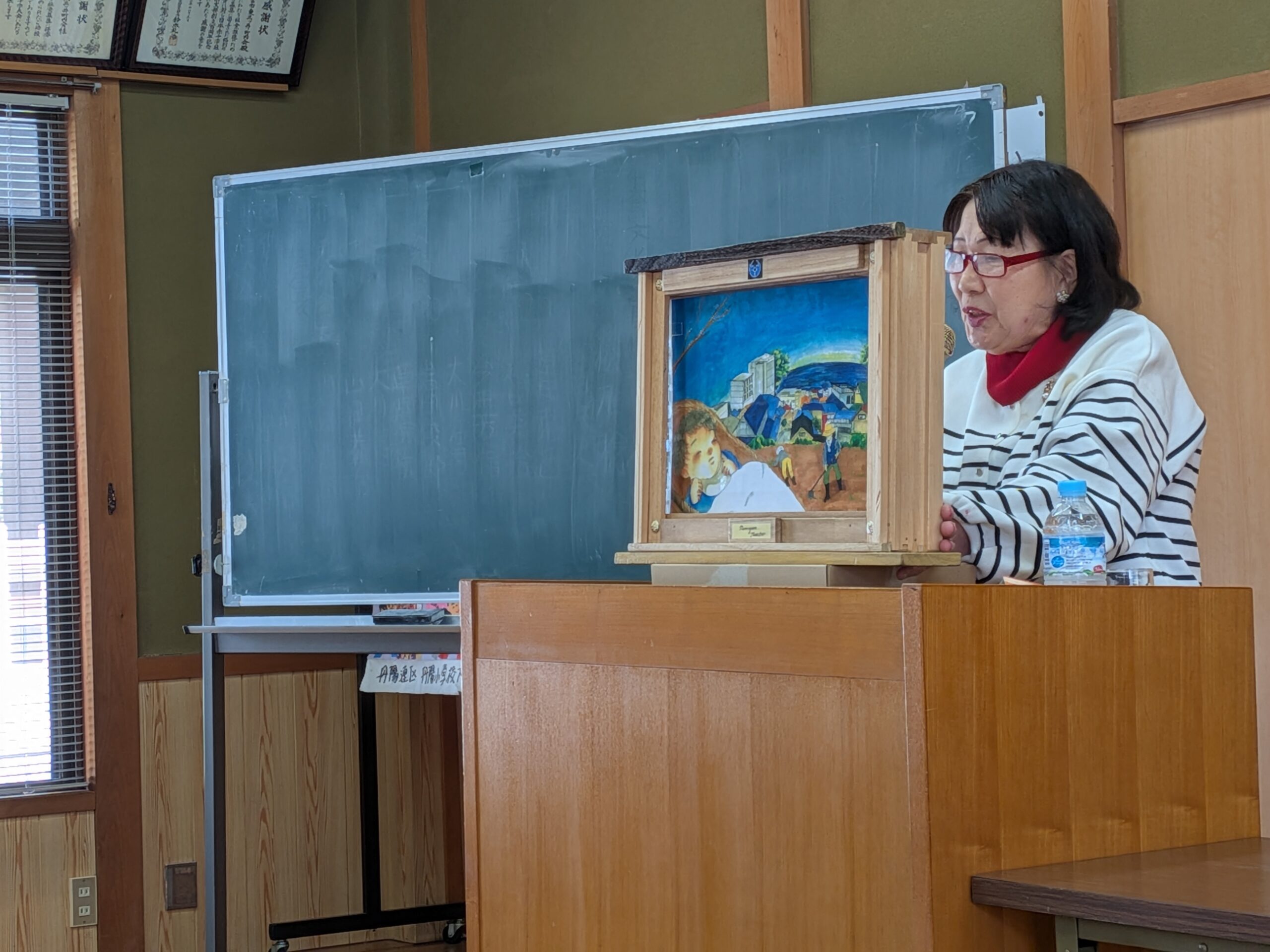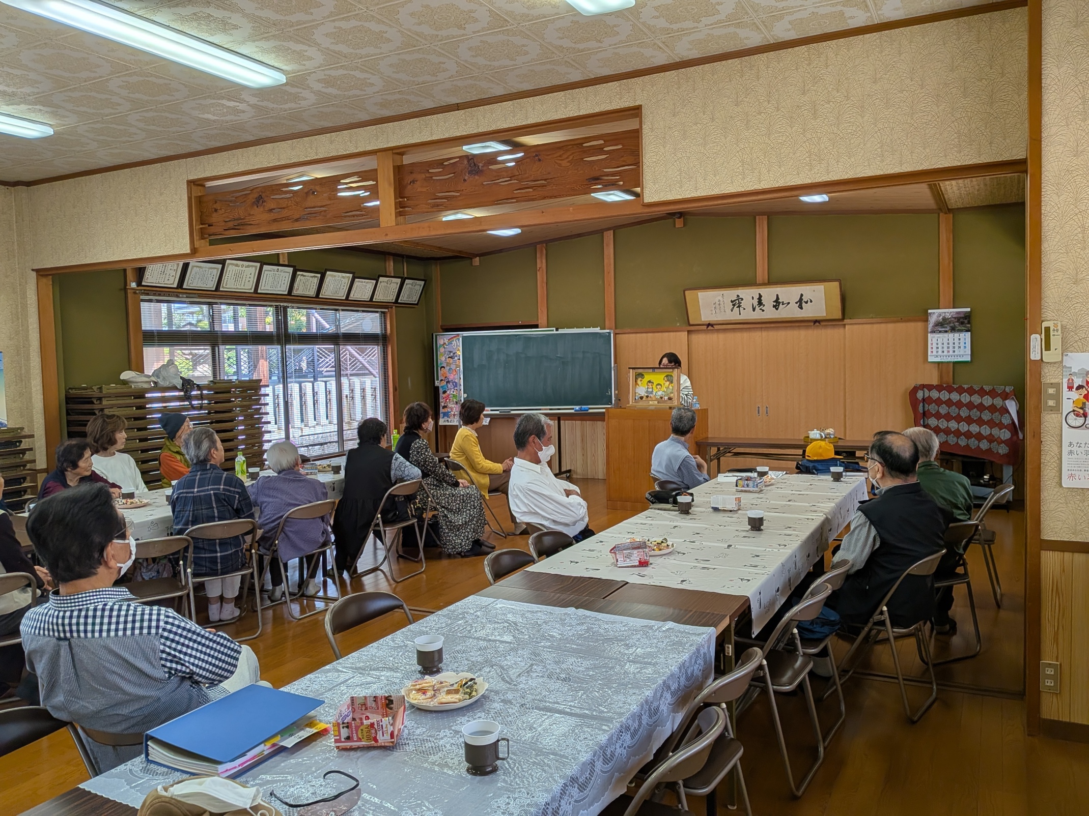 東三ツ井和寿会(老人クラブ) 第83回東三ツ井おしゃべり会開催‼ 2026.4.29 令和8年4月28日(火) 9:00~11:00 東三ツ井公民館において開催しました。 今回は、イベント「紙芝居とトークショー」として、南ちゃんこと南條美知子さんをお招き して開催!他地区の方を含めて22名の参加がありました。 南ちゃんこと南條さんは、豊明市にお住まいで各地域の「憩いの広場」「公民館」などに出掛 けて「南ちゃんシアター」として公演しています。 今回は、ご縁があって当地においでいただきご公演をお願いしました。 紙芝居は、「東日本大震災 津波」「桶狭間の戦い」の2本。 トークショーでは、皆で懐かしい歌を唄いながらの「手遊び」で脳トレを行い、笑いもあって 楽しい時間を過ごすことができました。 当会では、これからも茶話会を中心に各種イベントを考案し実施して行きます。見学無料大歓迎! お誘い合わせてご参加ください。 次回は、5月12日(火)9:00~11:00東三ツ井公民館で開催の予定です。 紙芝居を公演する南條美知子さんと会場の様子 Post 投稿者: staff 東三ツ井和寿会(老人クラブ) 第22回夜のおしゃべり会開催! 関連記事 おしゃべり会2025.5.27 第82回東三ツ井おしゃべり会開催! 社会見学ツアー 老人クラブシルバー教養講座と丹陽公民館成人学習部と共催 第78回東三ツ井おしゃべり会を開催しました。 6月2回目「東三ツ井おしゃべり会」開催! おでかけ広場「東三ツ井おしゃべり会」開催予定